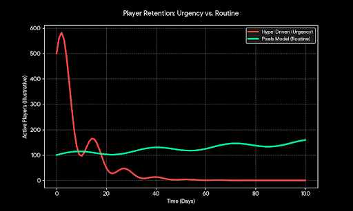 Большинство проектов в этой области начинается громко. Большие обещания, сложные системы, постоянные стимулы для быстрого привлечения людей. И на время это срабатывает. Вы получаете активность, шум, графики, движущиеся в правильном направлении. Но под этим настоящие поведенческие паттерны обычно хрупкие. Люди не остаются, они циркулируют.