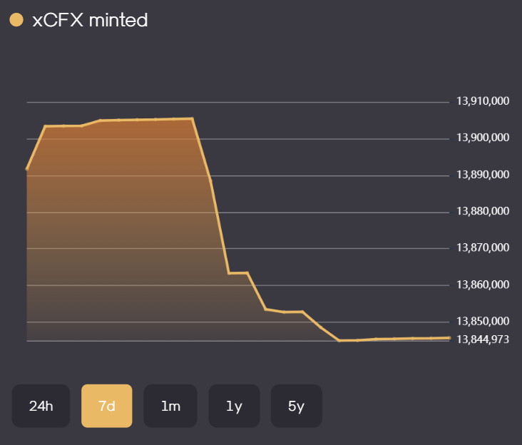 Объем выпуска xCFX на платформе ликвидного стейкинга Nucleon на Conflux eSpace уменьшился.