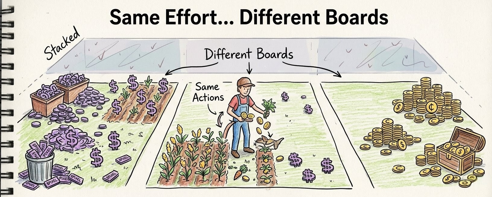 on pixels, Coins don’t care which board i’m in, they just keep running, but pixels only shows up where the system can actually afford it, and that’s where it shifts for me