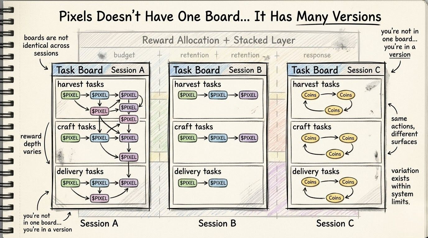 like i log in Pixels, do the usual… farm loops, Task Board, check what’s there, run it, come back later… nothing strange on the surface, but then something feels off, not broken, just different. same actions, same time, same effort, but different outcomes, and at first i keep trying to explain it in the obvious way… maybe i picked the wrong tasks, maybe i missed a chain, maybe timing was off again.