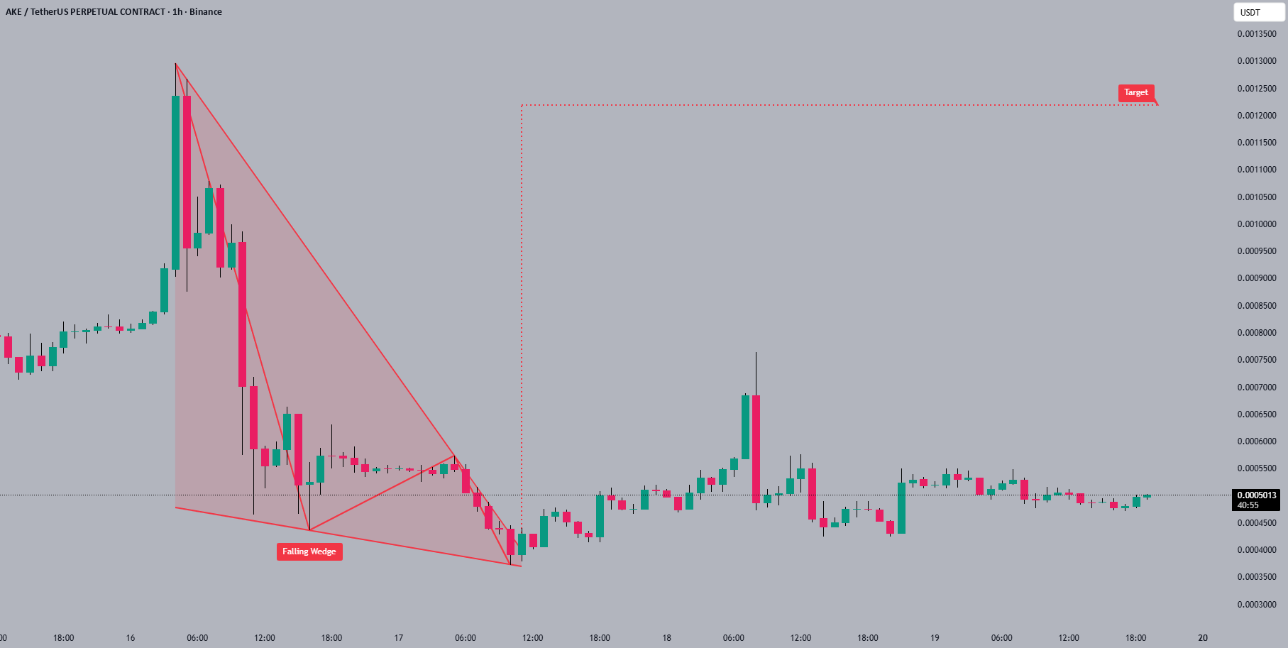 AKE показывает боковую консолидацию 😴 после прорыва нисходящего паттерна. Объем, похоже, стабильный, что указывает на продолжающийся интерес и поддержку на этом уровне. Следующая цель близка к 0.00125 🚀.