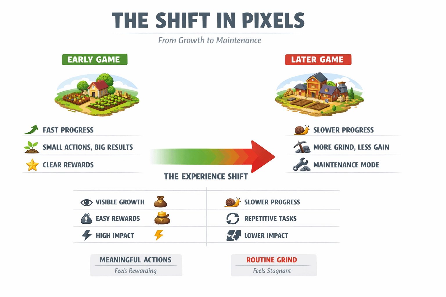 Сначала я этого не заметила, но что-то в Pixels медленно изменило ощущение прогресса. В начале все казалось плавным и легким.