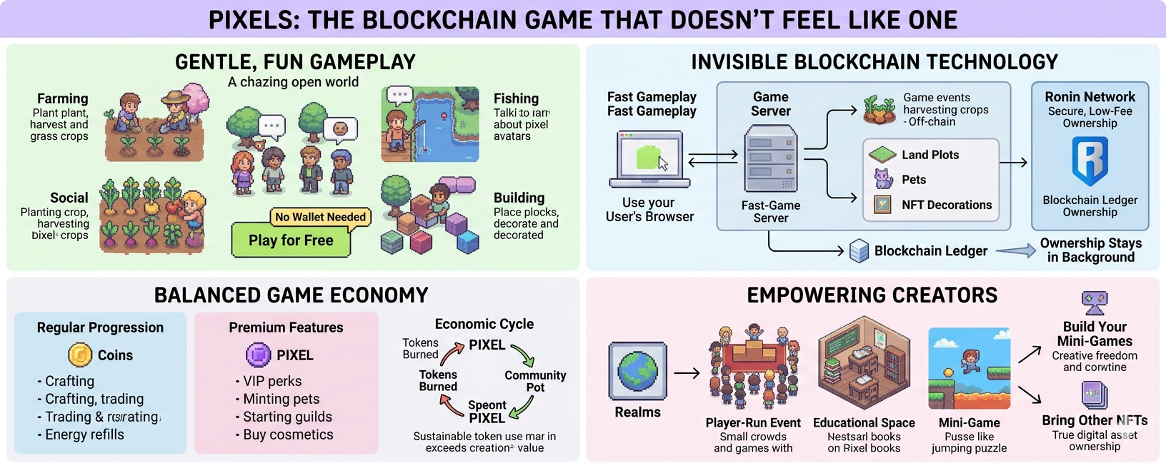 This is where Pixels fits into the bigger story of blockchain growing up. We’ve moved from clunky general-purpose chains that choked under normal traffic to purpose-built gaming networks like Ronin. The real win here isn’t flashy tech—it’s that the blockchain disappears so the fun can stay front and center. Millions of people have already played without ever thinking of themselves as “crypto users.” That quiet, low-friction onboarding is something most Web3 projects have never managed.