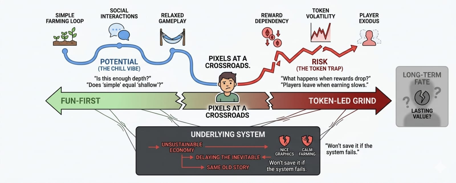 Because at the end of the day, if the system behind it doesn’t hold, the nice graphics and calm farming won’t save it. We’ve seen better-looking games die faster.
