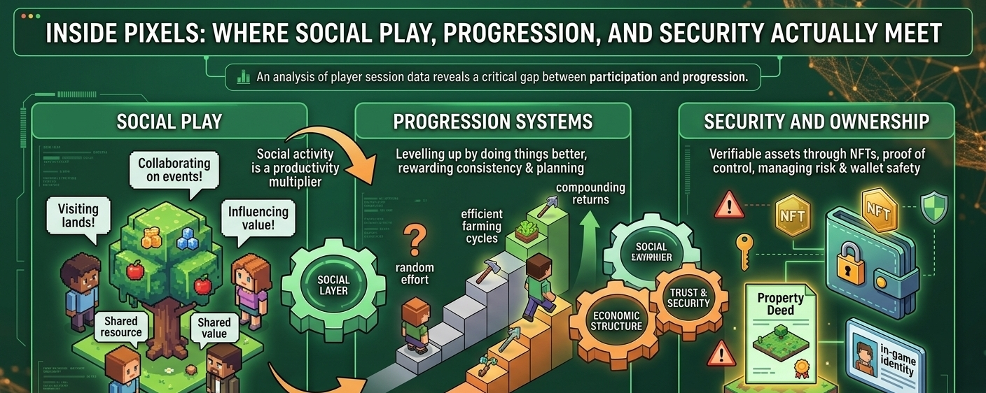 What stands out most is that Pixels doesn’t rely on a single mechanic to hold everything together. Social interaction, progression #pixel systems, and asset ownership all connect, but none of them work perfectly on their own. If one weakens—if players stop engaging socially, or if progression feels unrewarding—the whole system feels it.
