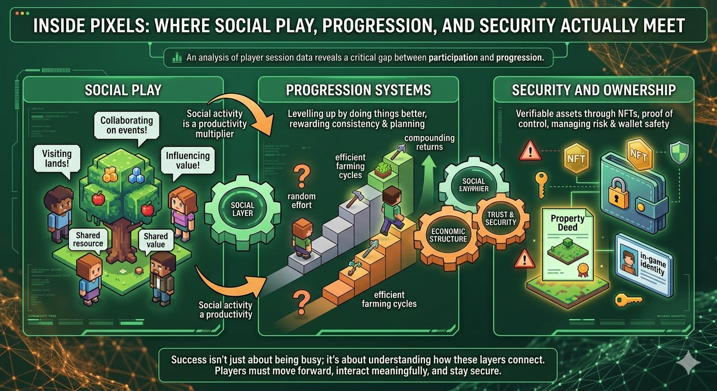 I realized something was off during a routine check on player sessions. Activity looked strong—lots of movement, interactions, and task completion—but when I traced deeper behavior, only a portion of players were actually progressing in a meaningful way. The rest were active, but not advancing. That gap between participation and progression is where Pixels becomes interesting.