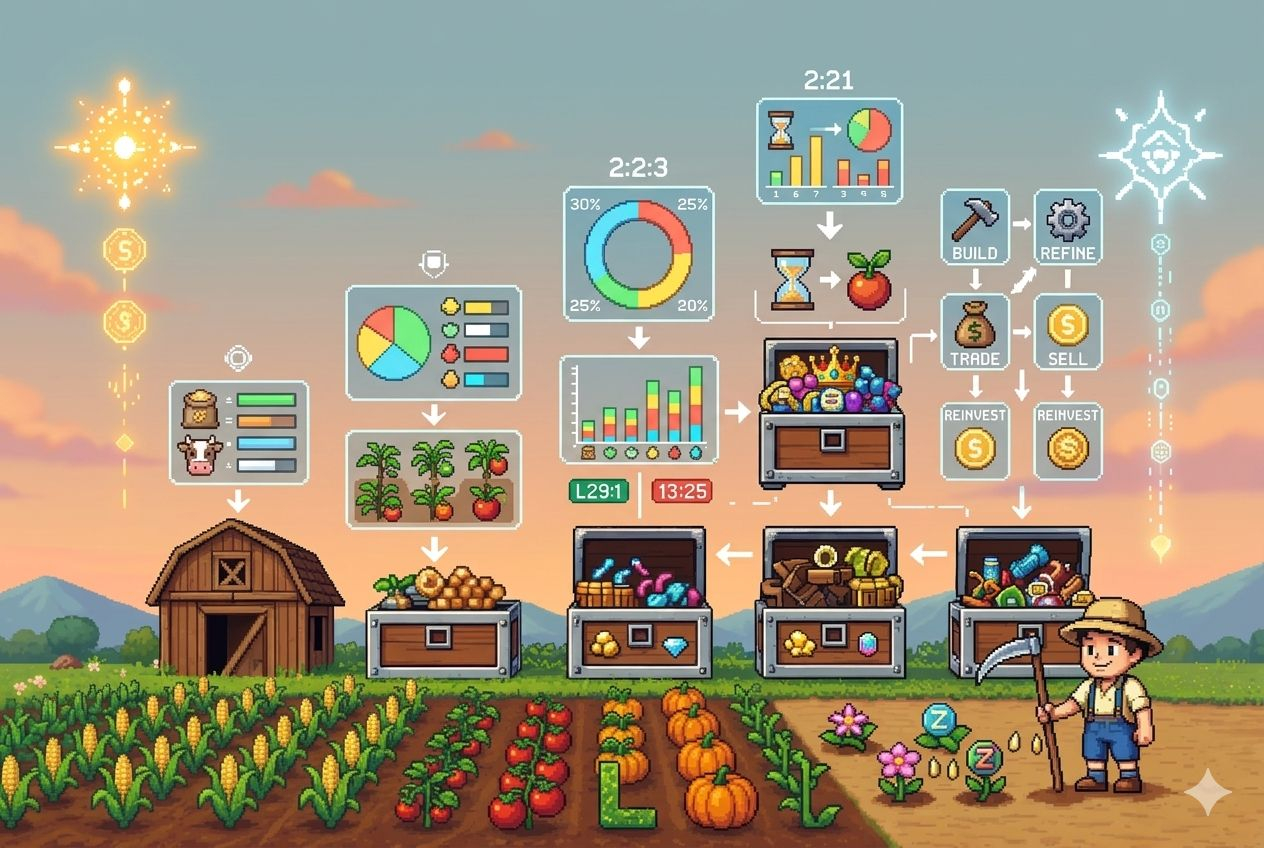 Time slowly becomes the real resource. Not just in-game currency, not even tokens, but attention itself. You don’t log in just because you want to; you log in because things need to be handled. Crops are ready. Inventory is full. Something needs optimization. Missing a cycle starts to feel like losing progress.