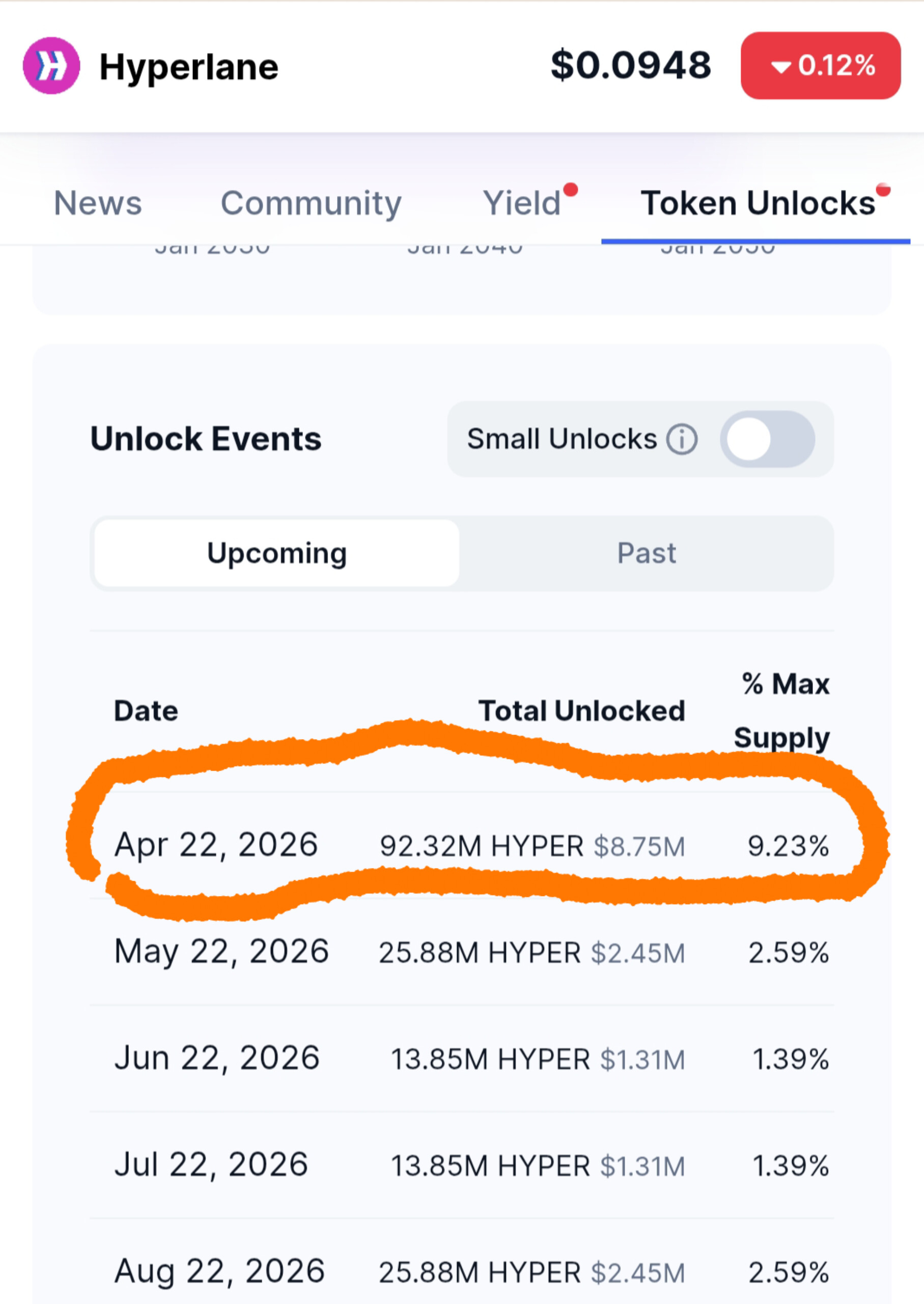 🔴 22 апреля → 92.32M HYPER ($8.75M) ← ЗАВТРА