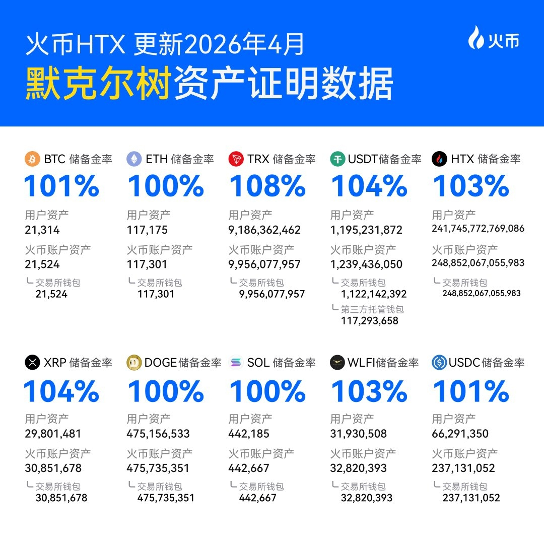 HTX has just released its April 2026 Merkle Tree Proof of Reserves — marking: