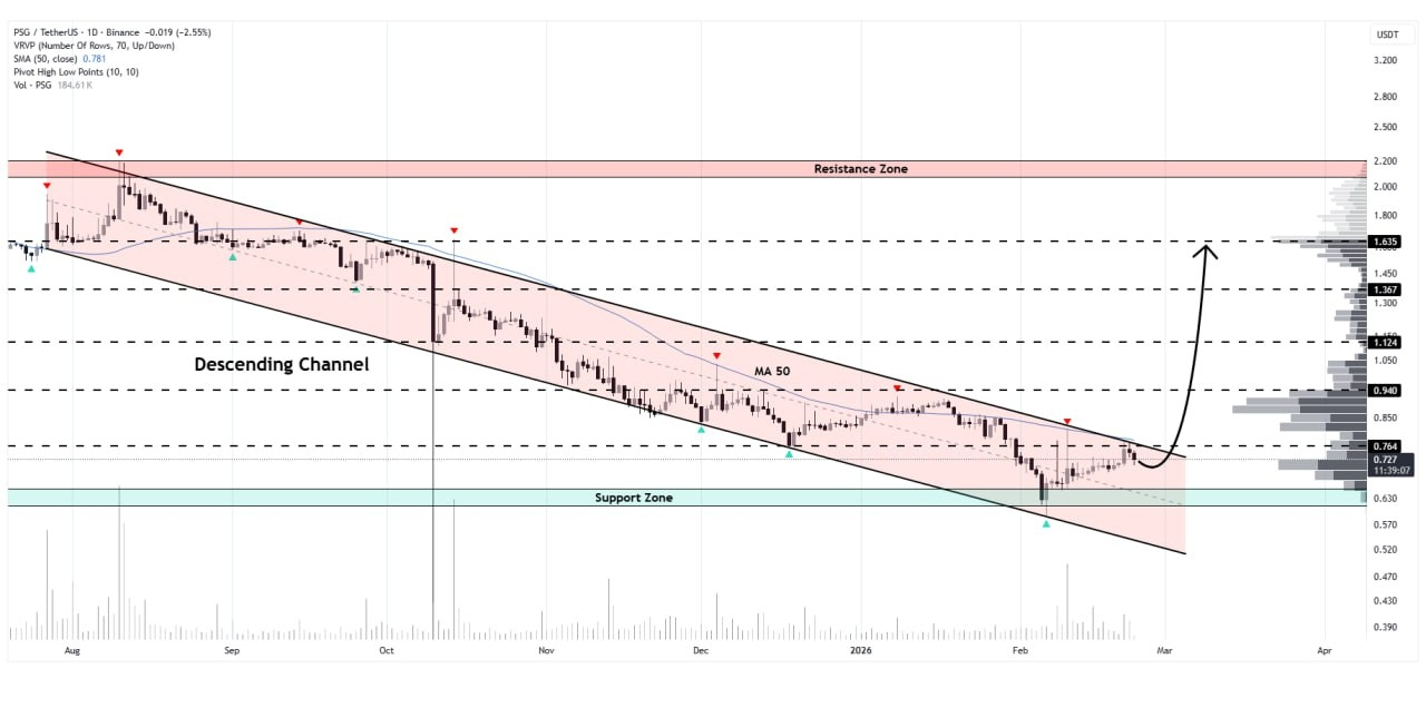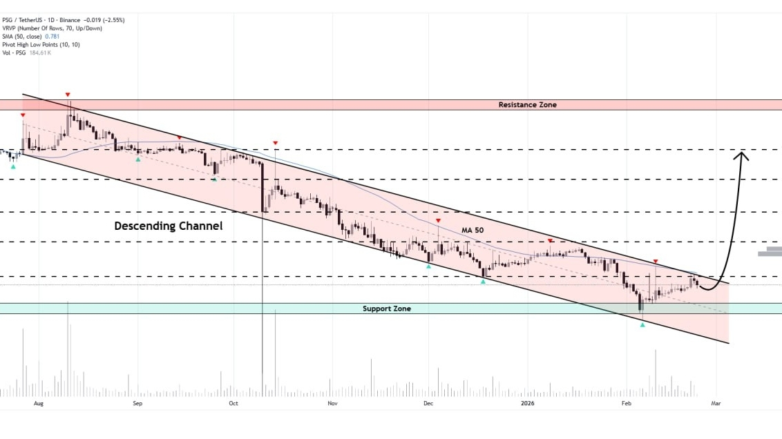 Paris Saint-Germain token is ready to break out of the descending channel formation on the daily timeframe