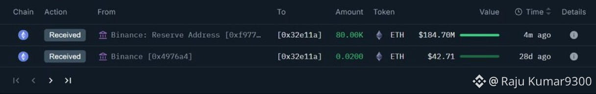 A 4-week-old wallet withdrew 80,000 $ETH worth $184.7M from #Binance .