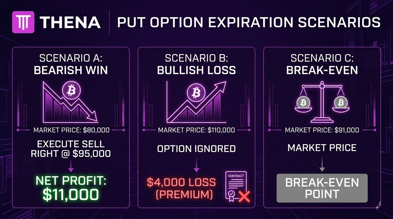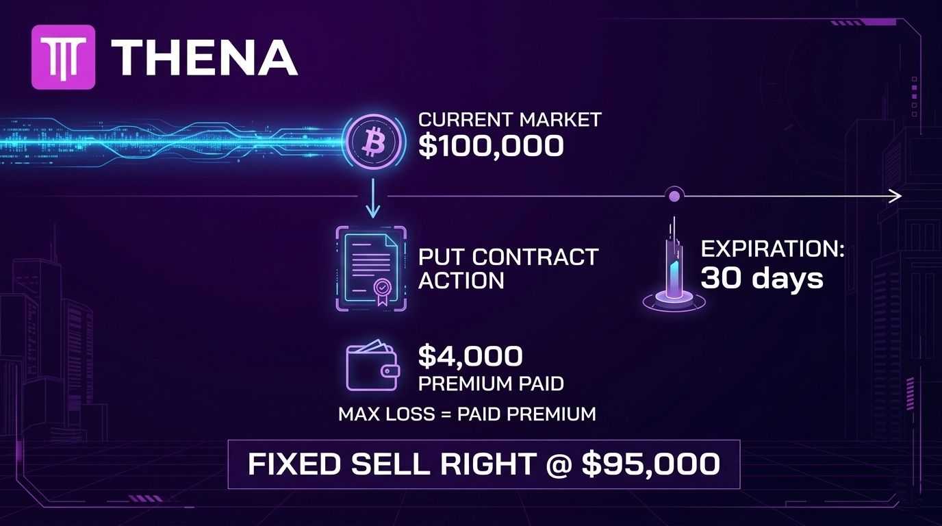 Пока #THENA готовится к запуску #OptionsTrading , мы рассмотрим пример использования опциона PUT.