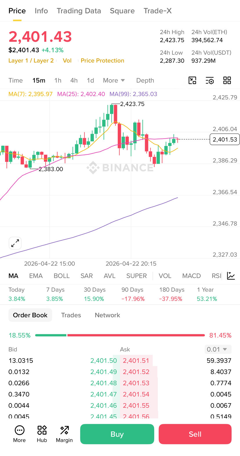$ETH rate увеличился с $2,336.30 до $2,401.43