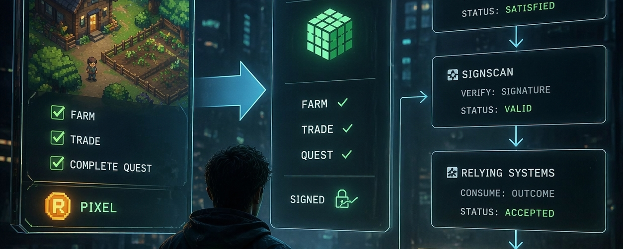 TokenTable doesn’t care how you played. It only checks if the condition is already marked as complete. SignScan doesn’t verify the journey, only the signature. Relying systems don’t question origin, they consume outcomes.