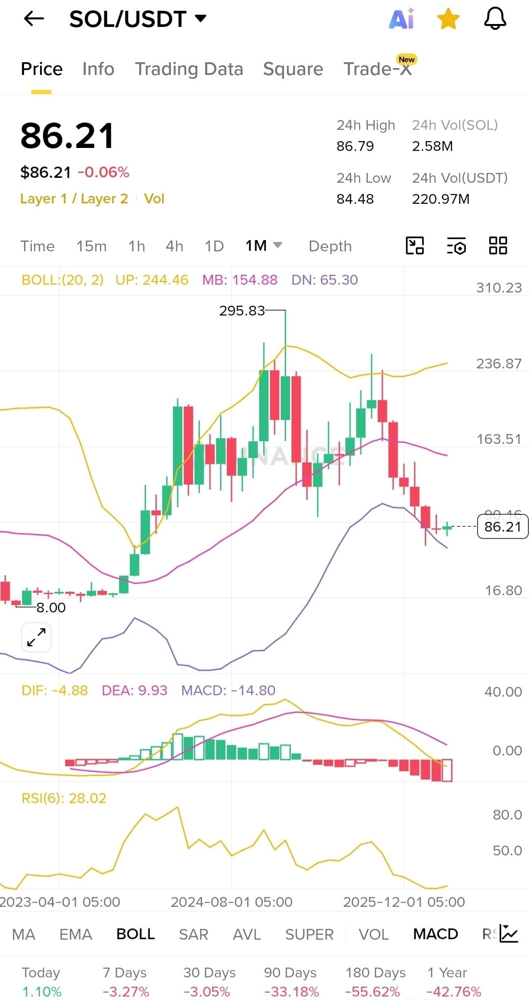 بشكل عام، هذا الرسم البياني يصرخ بالحذر، لكن ظروف البيع المفرط تصرخ بأن حركة انتعاش قد تكون قيد التكوين إذا أعطى السوق الأوسع بعض المجال. أنا أراقب الشموع القليلة القادمة عن كثب لأرى إذا ما تدخل المشترون أم أننا سنستمر في الانزلاق على طول بولينجر السفلي. ⚖️