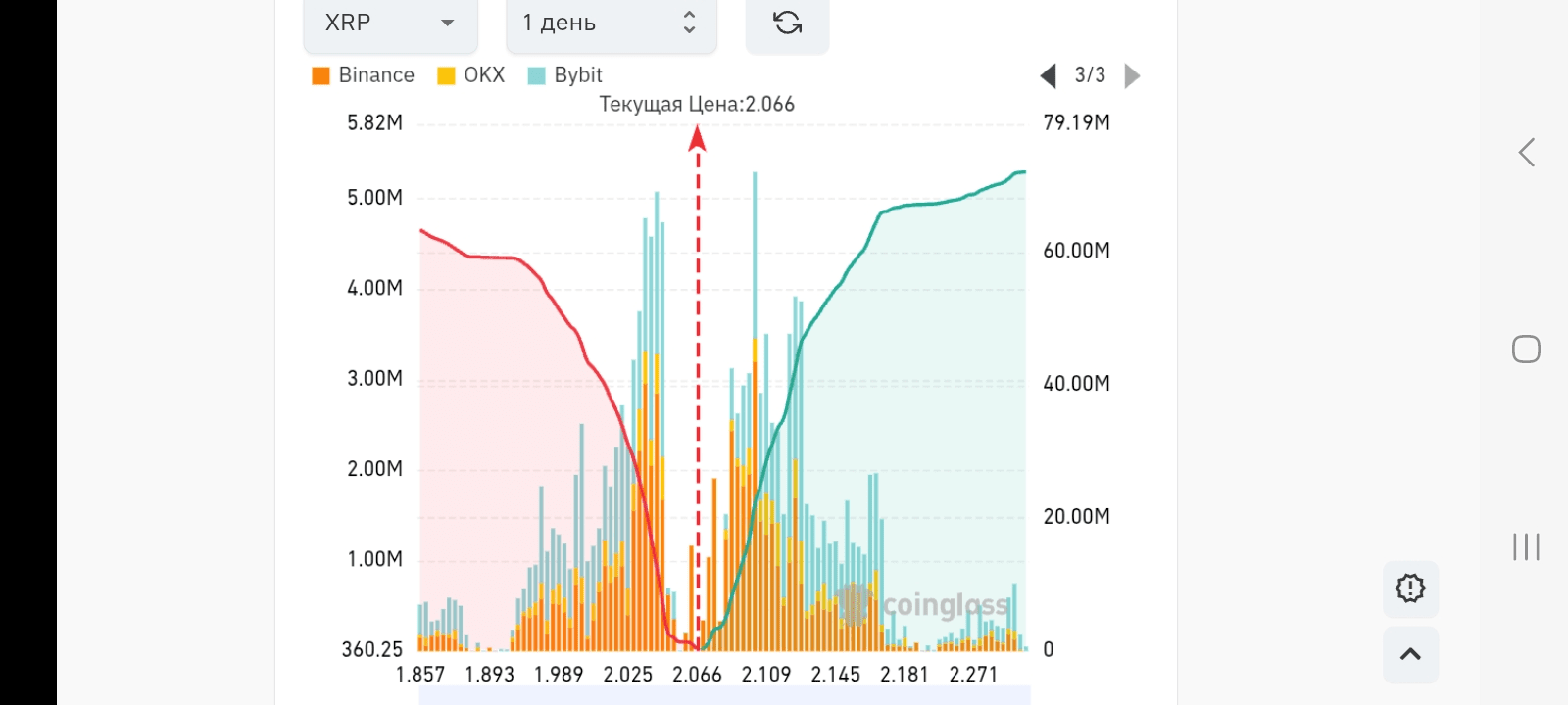 Текущая цена XRP удерживается примерно в том же диапазоне — около 2.066, что говорит о краткосрочном равновесии между покупателями и продавцами.