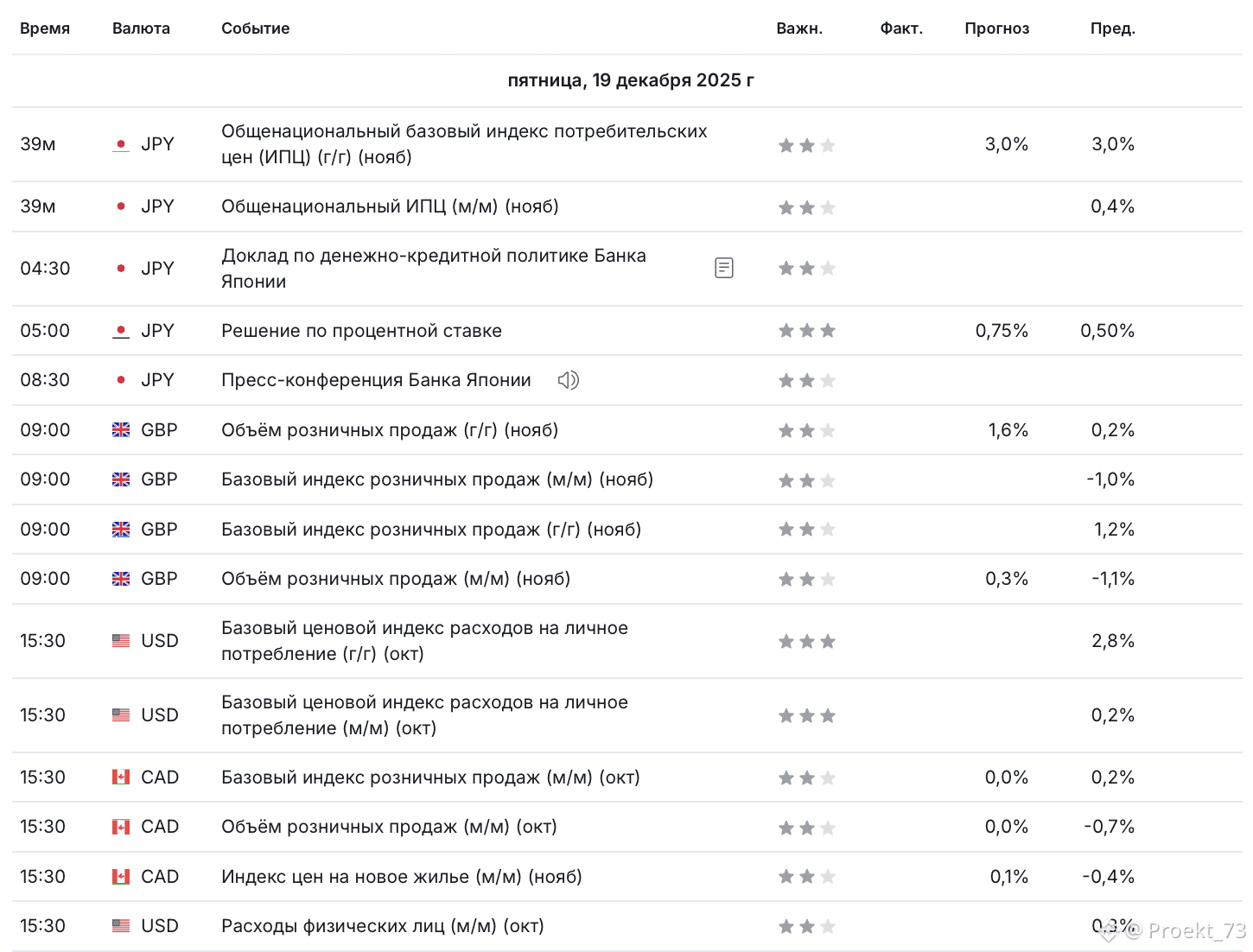 Важные для крипторынка события 19 декабря из экономического календаря. Как уже было сказано в предыдущем посте, пятница - "день Японии" для крипторынка. НО это в первой половине дня.