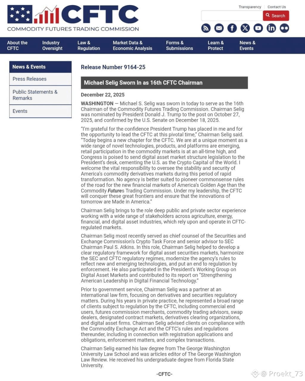 Майкл Селиг официально вступил в должность главы CFTC США. Комиссии по торговле товарными фьючерсами. С пафосом назвав это "новой главой в истории агентства"