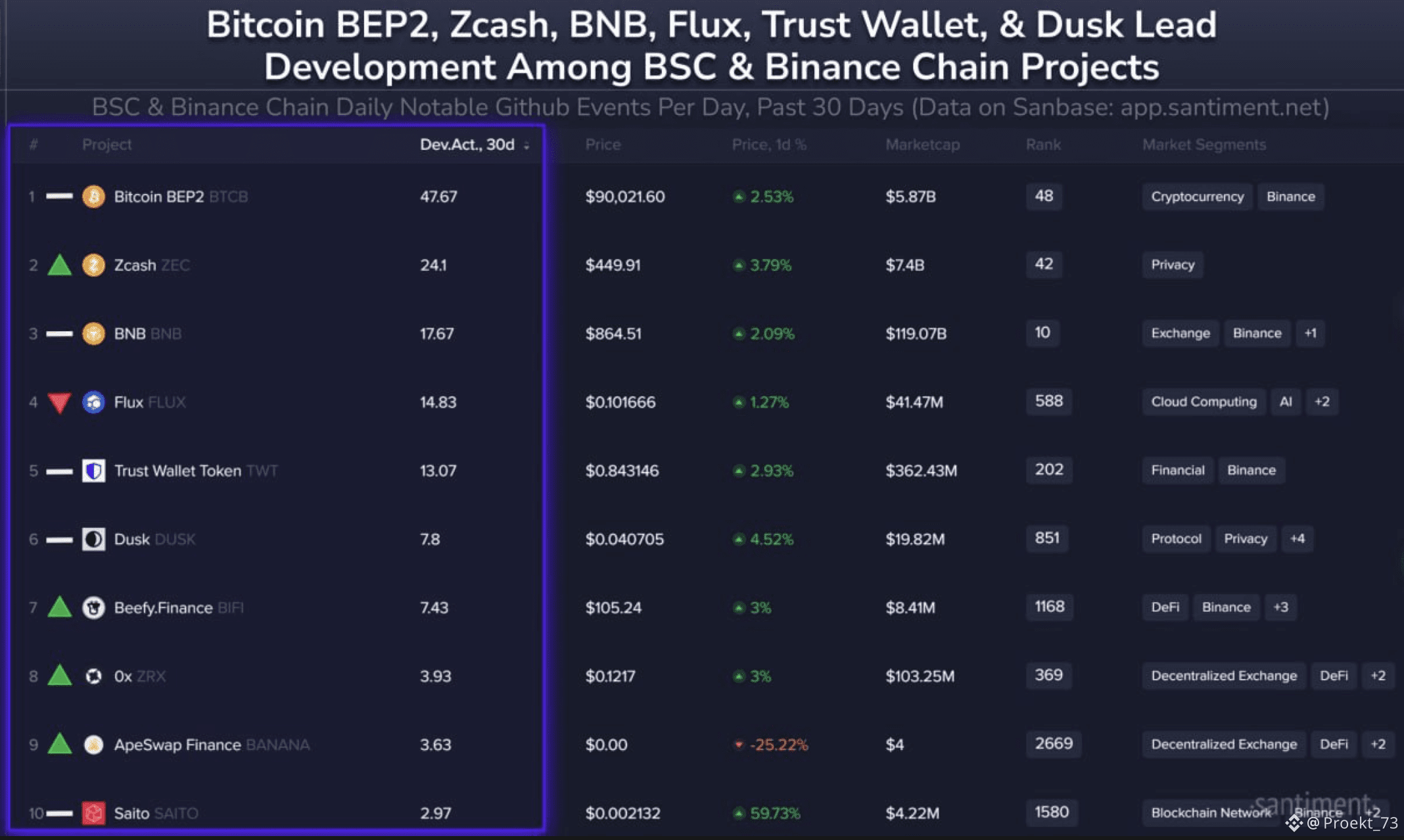 ТОП-10 криптопроектов по активности разработчиков в экосистеме Binance SmartChain в декабре 2025, по данным Santiment. Анализ за последние 30 дней.