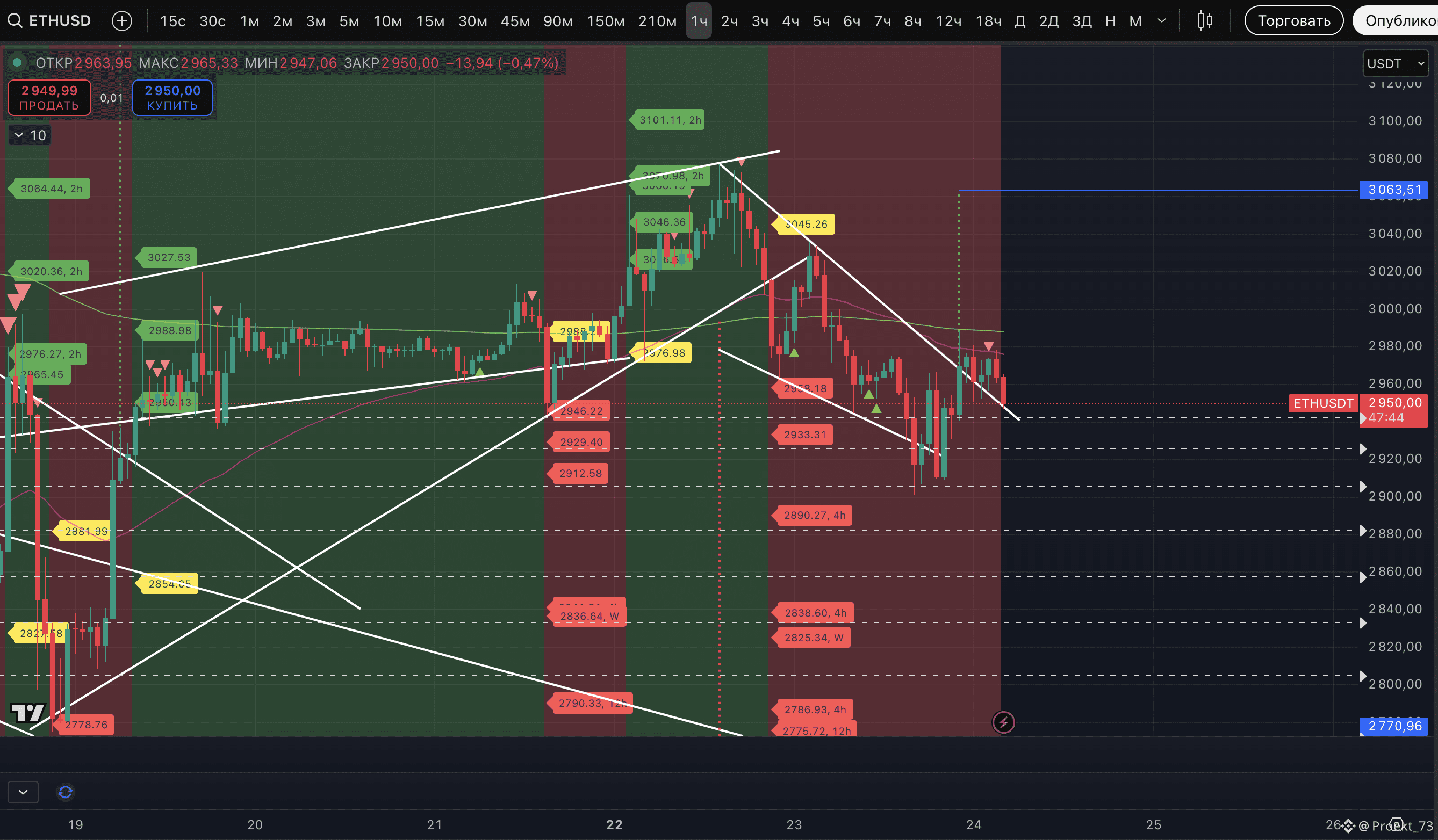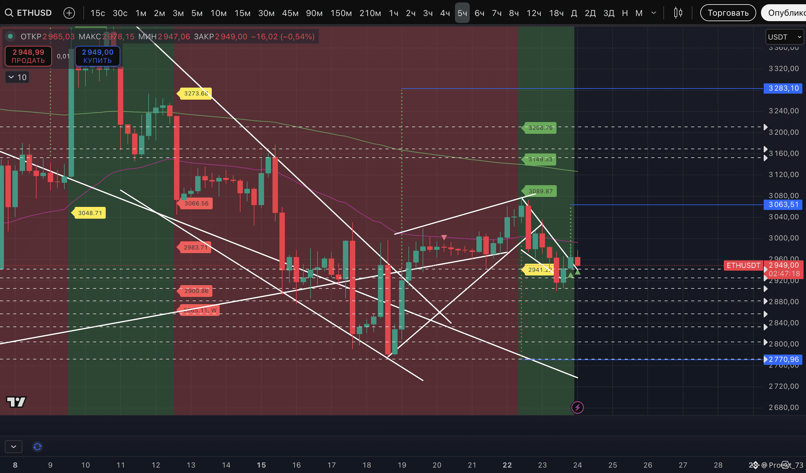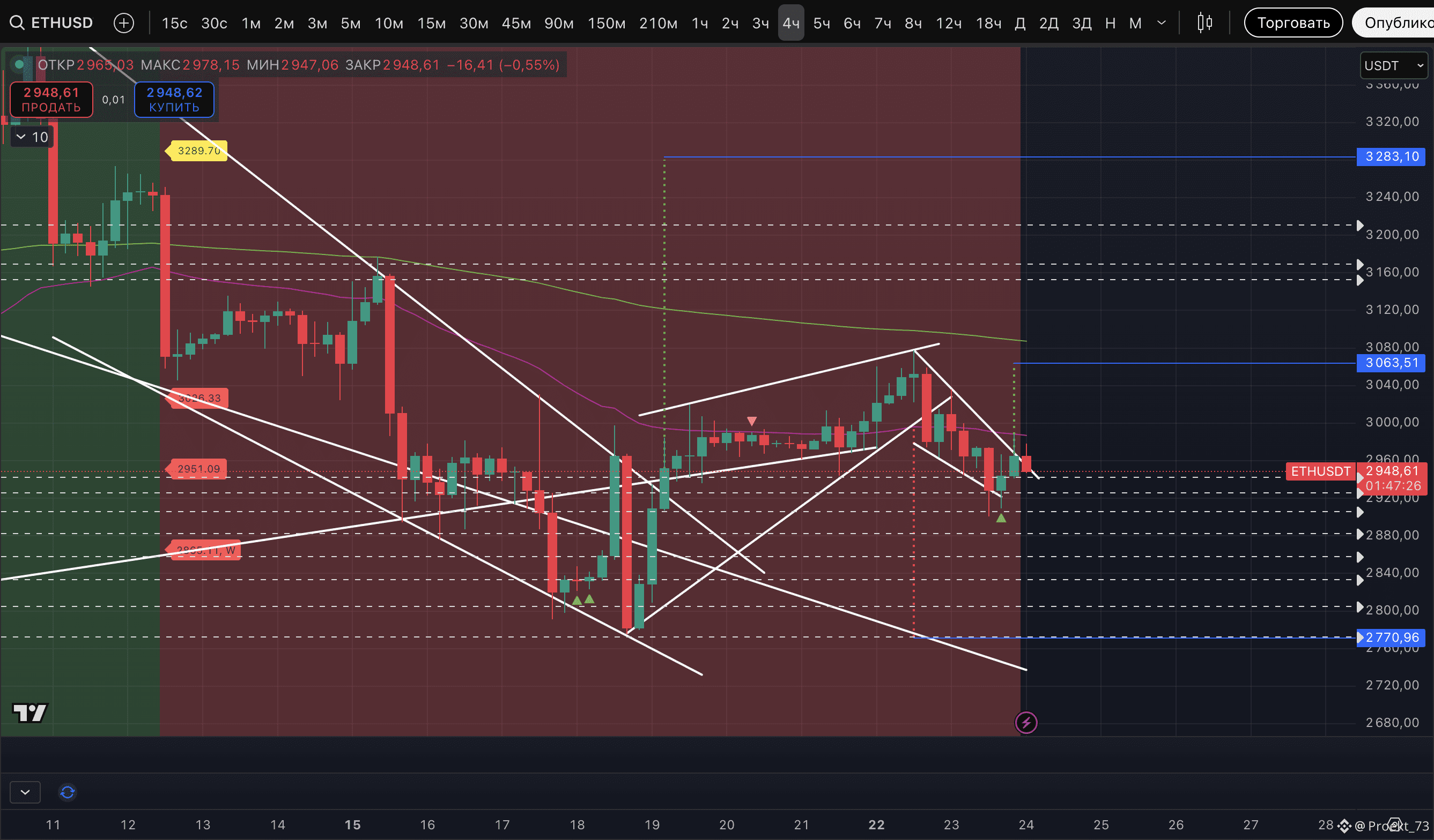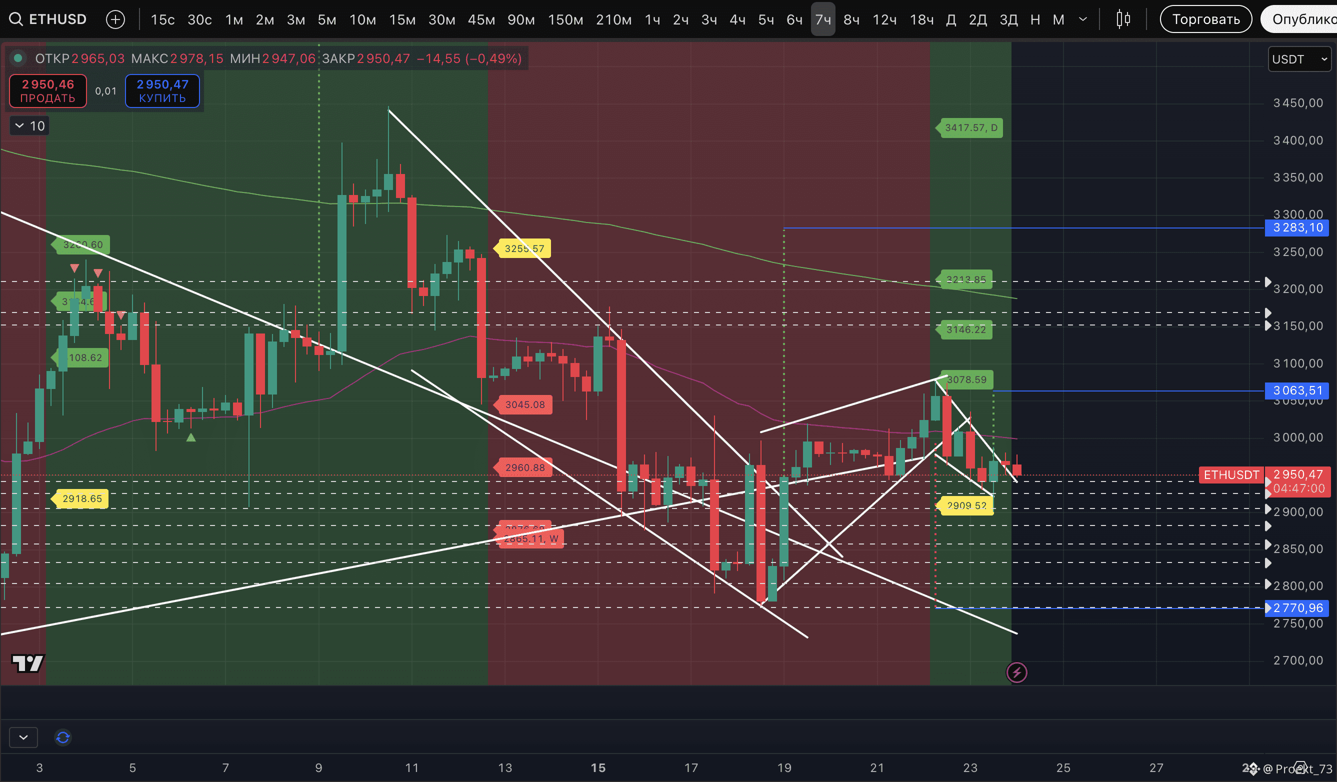 С учетом всего этого и того, что в позиции по #ETH у нас на сейчас только 1/3 от объема и мы работаем с 15 плечом - есть возможность задержаться в сделке и в случае, если цена таки подтвердит снижение.