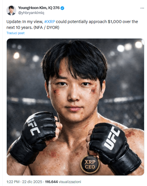 $XRP Южнокорейский ученый ЁнХун Ким, который утверждает, что у него самый высокий IQ в мире, изложил долгосрочный сценарий, в котором XRP может достичь $1,000.
