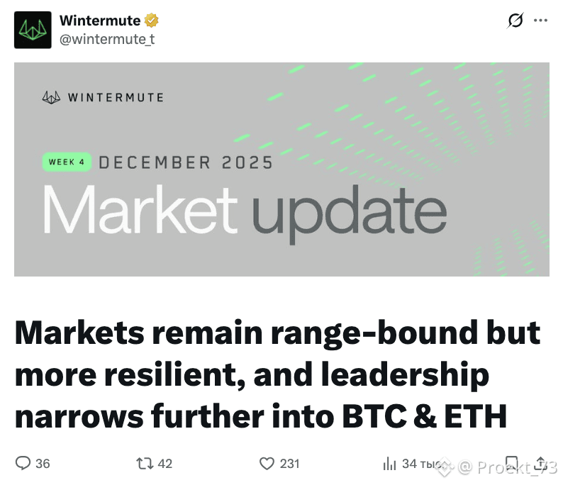 Аналитика маркетмейкера Wintermute: Капитал концентрируется в BTC и ETH, утекая из альткоинов. Рынок в фазе выжидания, а не капитуляции.