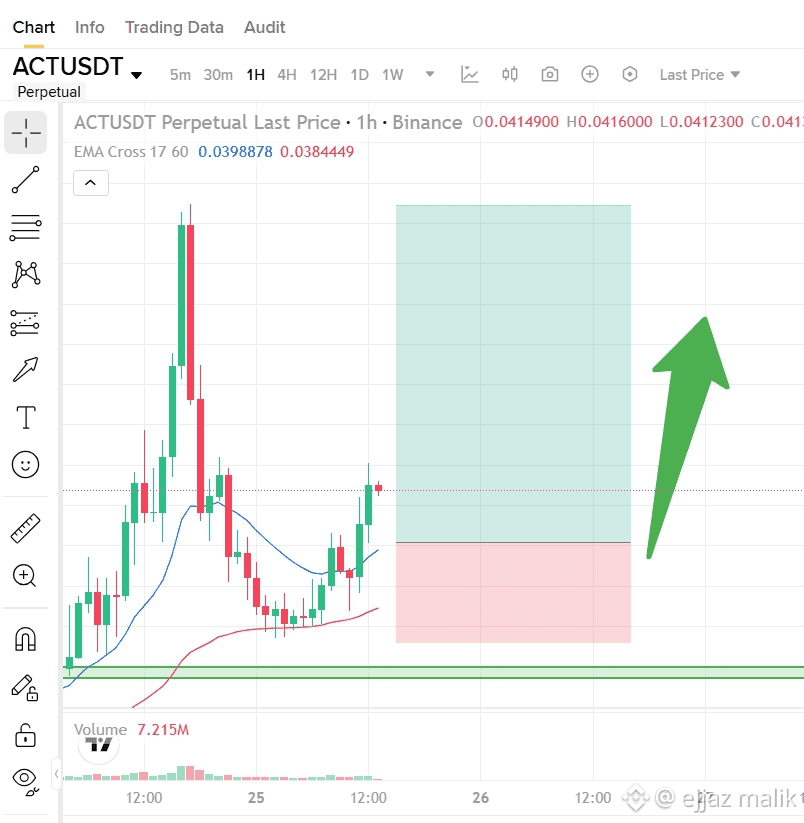 The rise from 0.03154 to 0.04848 came with a surge in buying volume, signaling smart money entering the market. Currently, ACT is in a healthy pullback, gaining momentum to challenge the previous high.