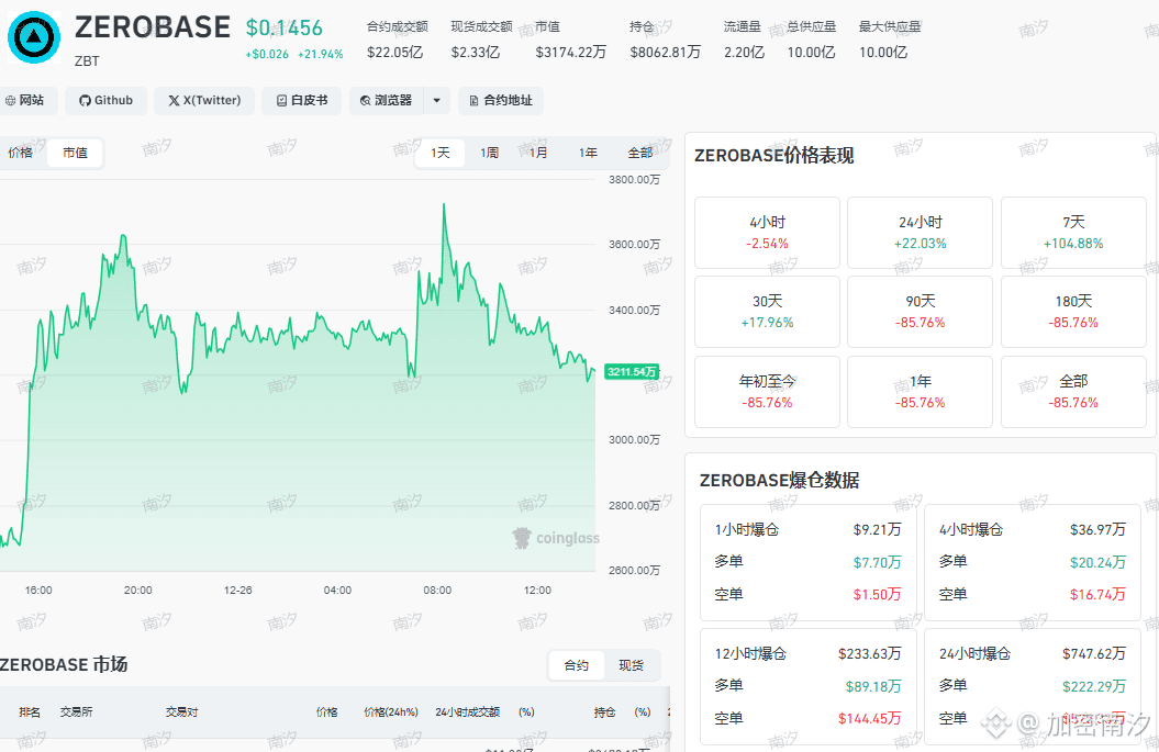 ZBT现价 $0.1456,24小时爆仓 $747 万,空单爆了 $525 万,说明什么?多空正在激烈交锋,空头虽然占优,但已被大量清算。这时候最容易出现“逼空行情”,就是突然拉一波,让空头措手不及。