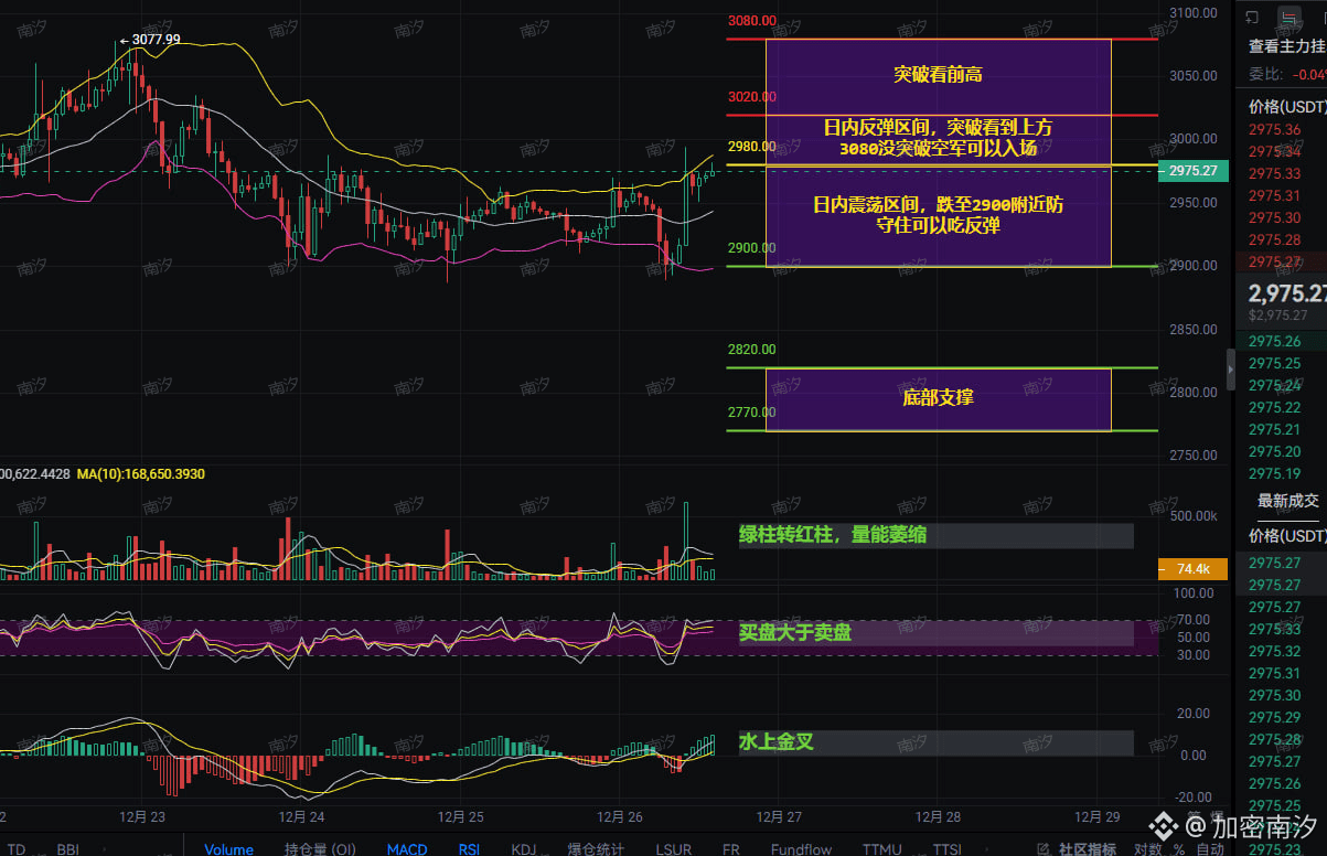 我的观点很明确:冲高必有回调,追涨就是送钱。3020附近如果滞涨,就是空单入场的好机会;下方先看 2900 支撑,守不住的话,甚至可能砸到 2820。但你别慌,跌下来才是机会。