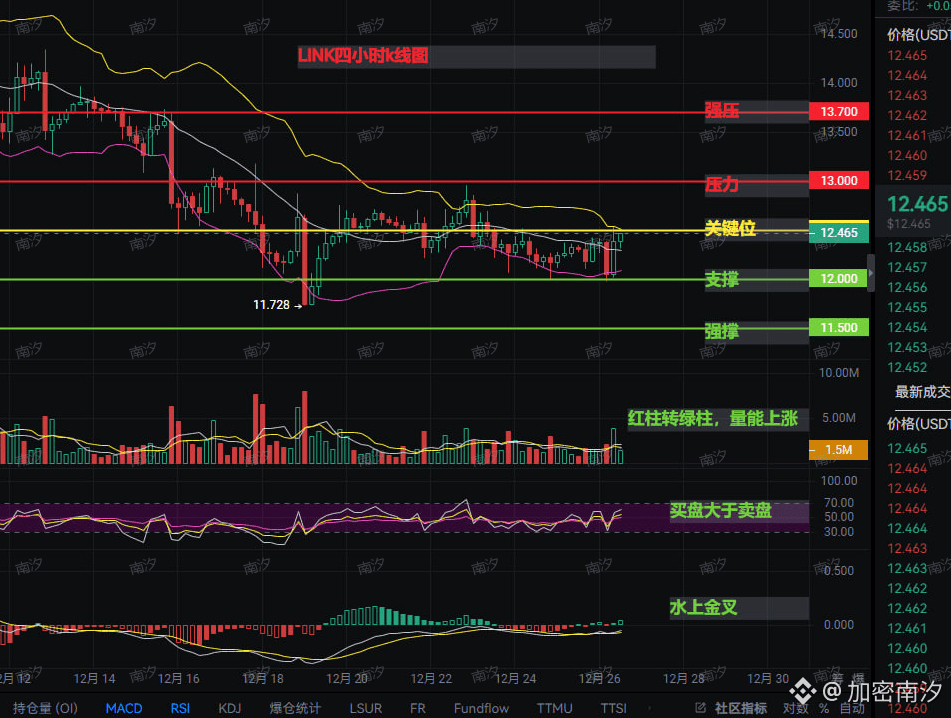 就像上个月那次,LINK也是巨鲸吸筹后砸了一波,很多人13.5追涨,结果跌到11.8才反弹。如果你学会“压力位空、支撑位试多”,哪怕方向看错,也能控制风险。