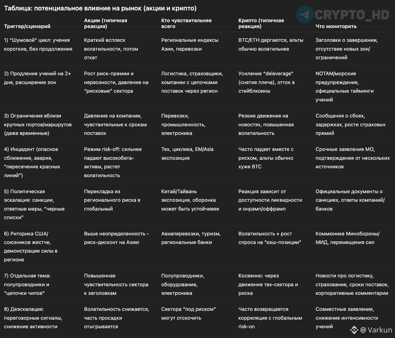 ➥ Пока это просто шумиха и демонстрация силы, а не боевые действия. Но рынок, политика и СМИ внимательно смотрят, перерастет ли это в затяжную историю или все закончится стандартным циклом учений.