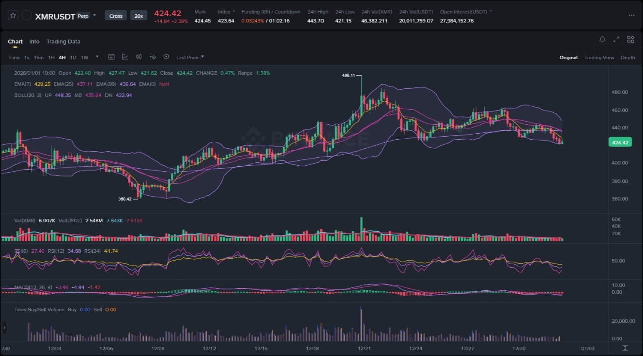 Этот недостаток новостей можно интерпретировать как нейтральный фактор. Для актива, ориентированного на конфиденциальность, такого как Monero, "отсутствие новостей — это хорошие новости" часто бывает правдой, так как наиболее значимые заголовки часто касаются негативного регуляторного контроля или делистинга с бирж. Отсутствие таких новостей позволяет основному ценностному предложению проекта о конфиденциальности и взаимозаменяемости оставаться основным долгосрочным двигателем для его преданного пользовательского базиса. Однако в краткосрочной перспективе этот тихий фон означает, что трейдеры смотрят почти исключительно на график в поисках подсказок. Рынок фактически находится в состоянии чистого технического открытия, где поток ордеров, ключевые уровни поддержки и сопротивления, а также индикаторы импульса являются основными определяющими факторами цены.