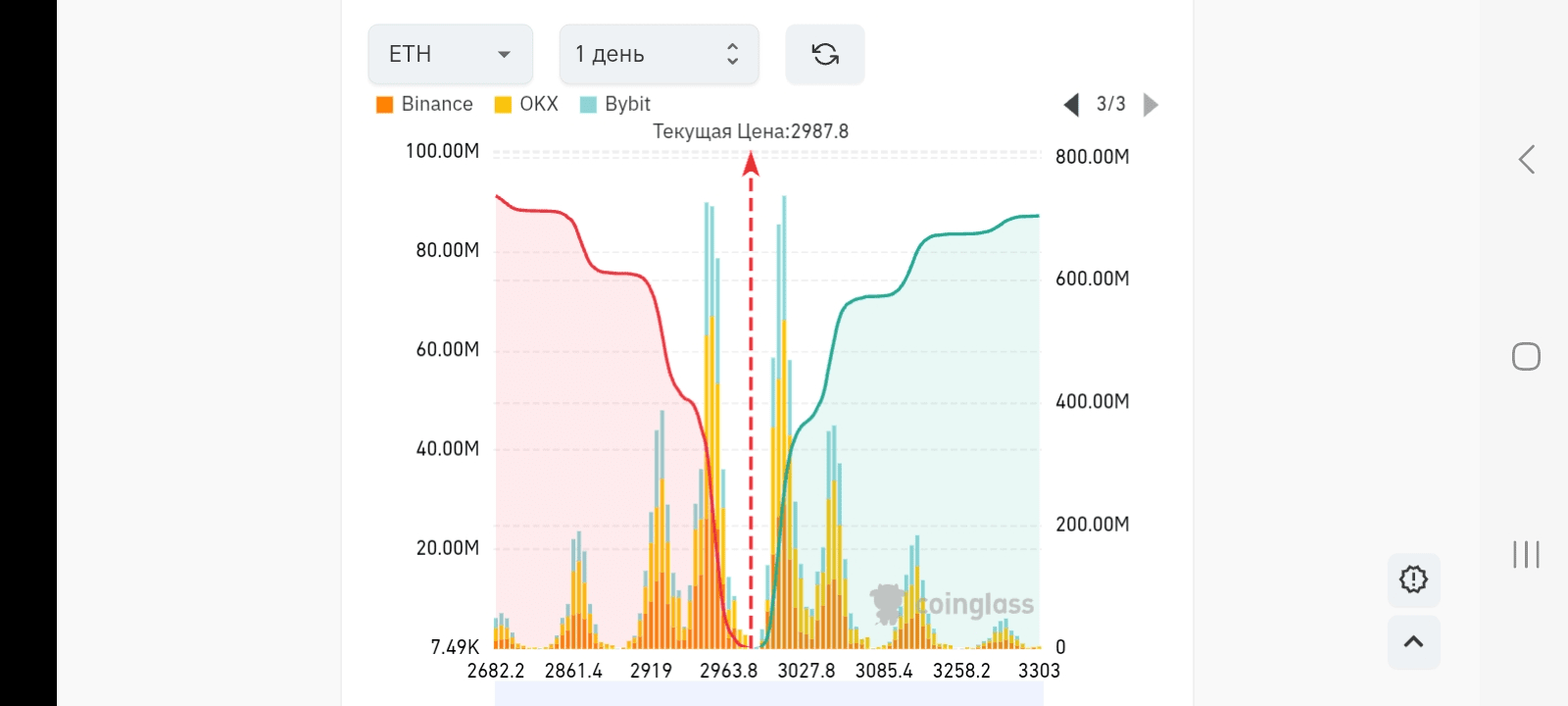 Ликвидации шортов: ключевая область находится выше текущей цены — 3008 – 3050, выступая зоной сопротивления и возможной целью для движения вверх.