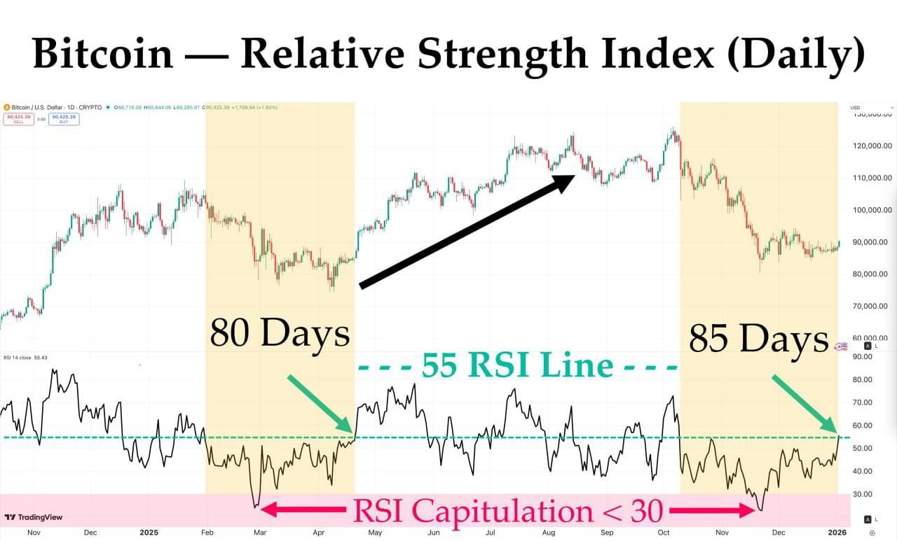 Минимум RSI в текущей коррекции опустился до 23, что даже ниже уровня начала 2025 года. Мы уже более 80 дней находимся ниже 55 RSI — это говорит о затяжной фазе слабости, а не о резком обвале.