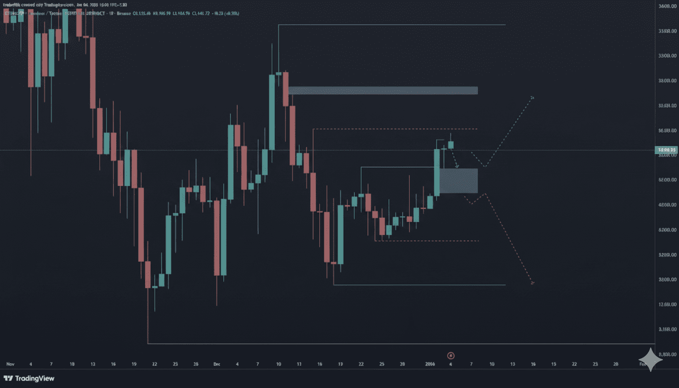 Прогноз тренда: Согласно предполагаемому пути на графике, цена может временно упасть в зону ликвидности, прежде чем попытаться сделать еще один шаг вверх.