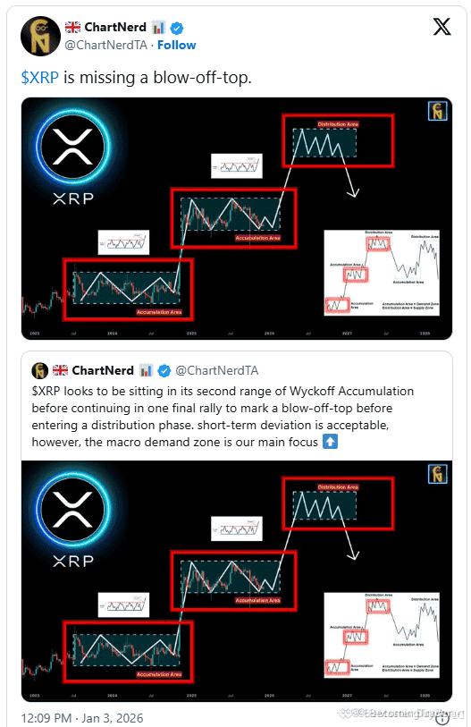 ChartNerd previously addressed the same chart in a post dated December 10, where he described XRP as sitting within its second Wyckoff accumulation range.