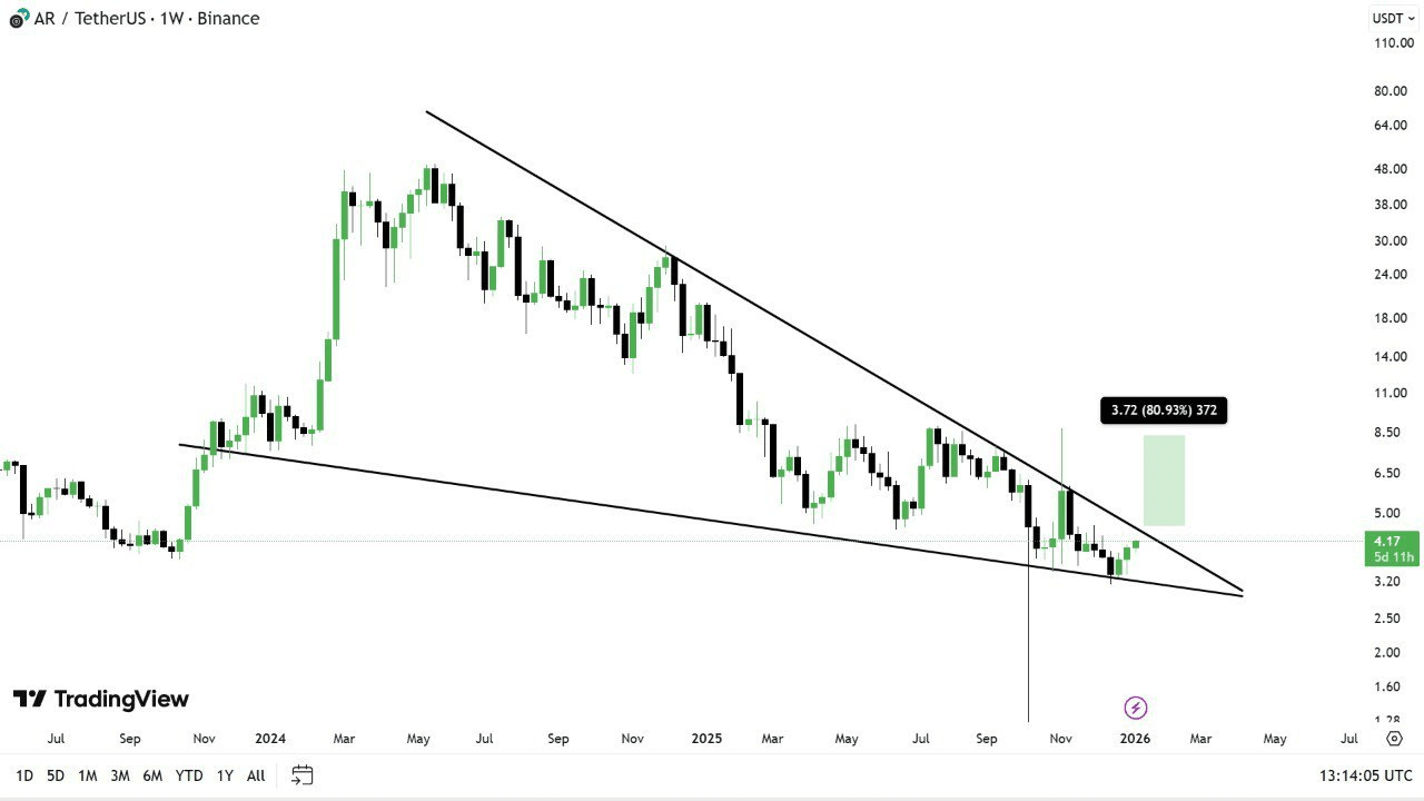 $AR находится на грани ❗️ пробоя из уходящего 📈 клина на еженедельном таймфрейме.