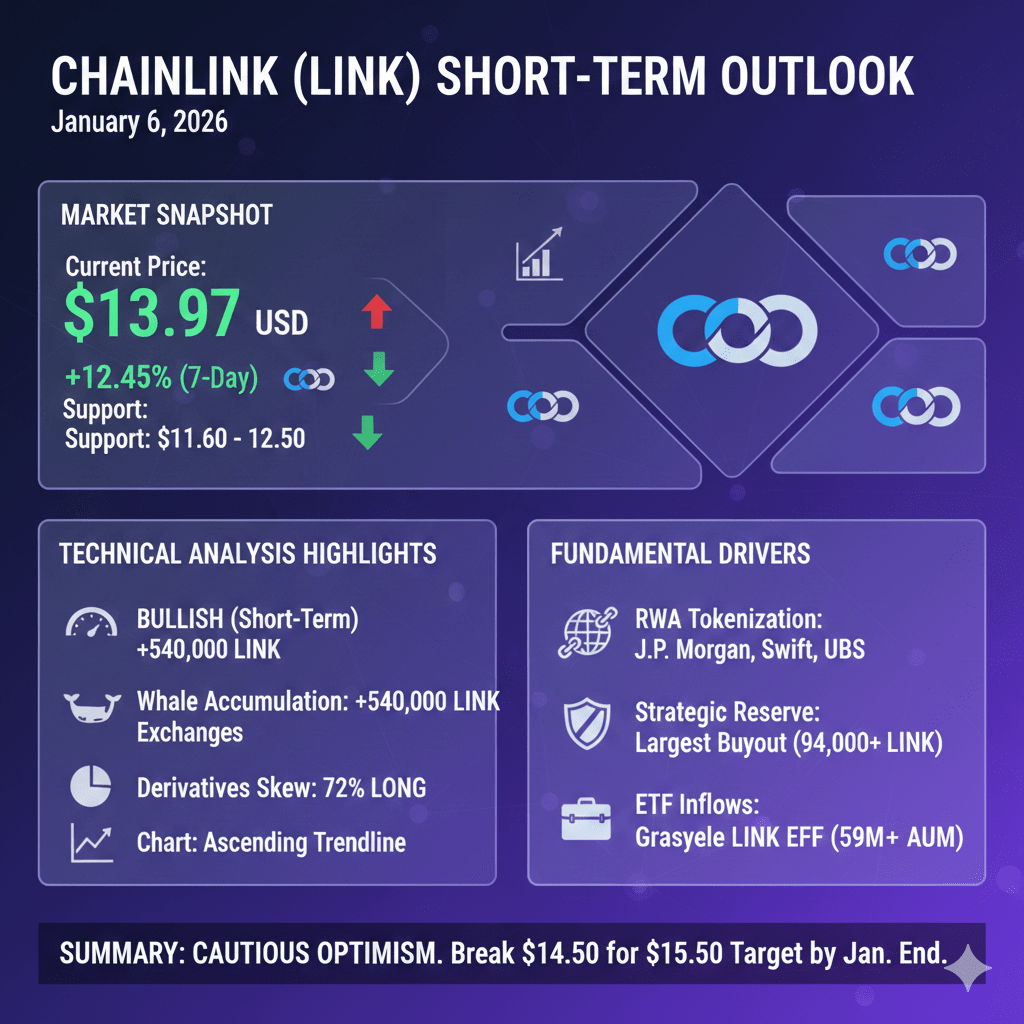 На 6 января 2026 года Chainlink (LINK) демонстрирует признаки потенциального краткосрочного прорыва, поддерживаемого агрессивным накоплением крупных инвесторов и интересом институциональных игроков. Ниже краткий анализ текущего состояния рынка.