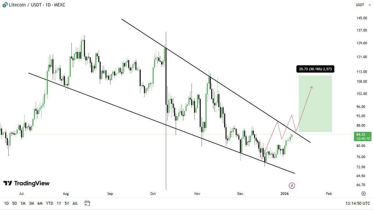 $LTC находится на грани ❗️ пробоя из фигуры понижающегося треугольника 📈 в таймфрейме Daily.