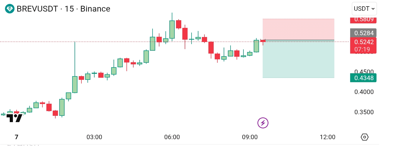 · Контекст графика: 15-минутный таймфрейм, нисходящий тренд с ~0,58 до 0,4348.