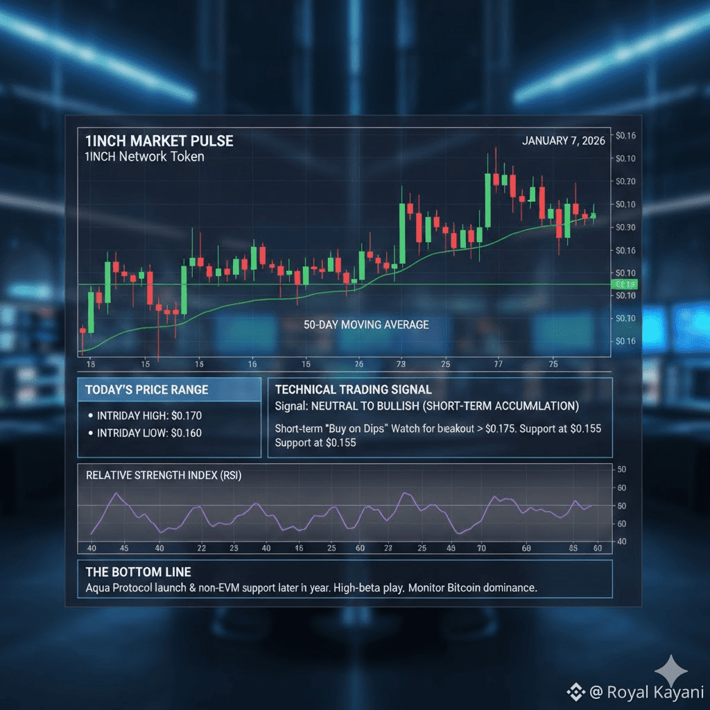 The 1INCH Network token is currently navigating a period of tight consolidation, mirroring a broader trend of cautious optimism in the DeFi sector. As of today, January 7, 2026, the asset is trading around the $0.16 mark, showing a slight cooling off after a period of modest weekly gains.