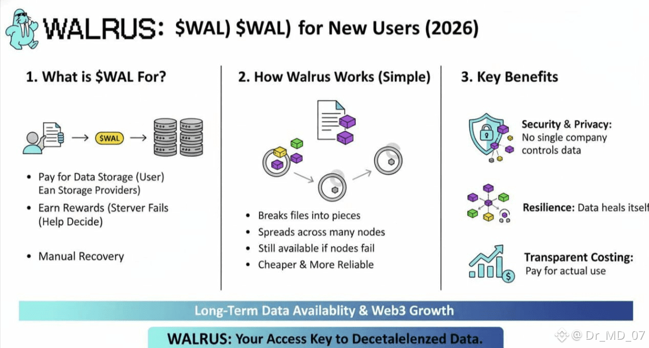 As people start to use storage more in 2026 a lot of new users are finding out about @Walrus 🦭/acc ($WAL) for the first time. Before you start using any system that involves crypto you need to know what the WALRUS token is actually for. Why it was made. The WALRUS token is not just for people to buy and sell to make money. It has a job inside the Walrus Protocol. The Walrus Protocol is, about storing data in a safe and affordable way without being controlled by one company on the Sui blockchain. WALRUS ($WAL) is a part of this.