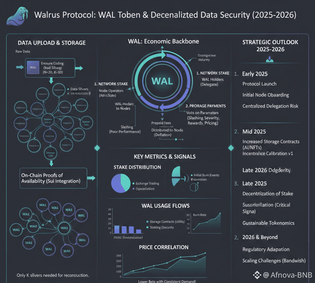 We are entering an era where data not just transactions defines blockchain infrastructure. AI models, NFT media, on-chain indexing, and complex dApps all require large-file storage with verifiable availability. Centralized cloud providers still dominate this layer, creating a gap for decentralized alternatives that can offer censorship resistance and true digital ownership. Walrus positions itself as a data availability layer integrated with Sui, and WAL is the economic backbone that coordinates behavior across independently operated storage nodes. This matters because blockchains are evolving from transaction engines into platforms that must secure massive off-chain assets while preserving decentralization and WAL is designed to reflect that shift economically.