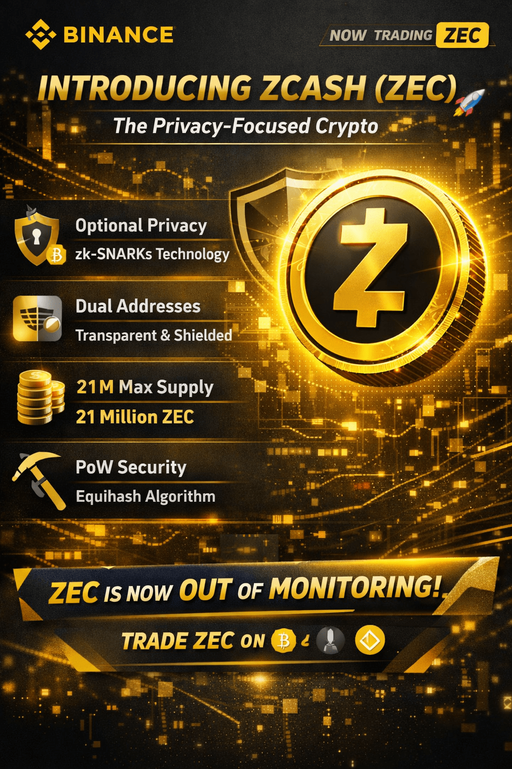 Binance убрала тег «Мониторинг» с ZEC, сигнализируя об увеличении доверия к его профилю соблюдения и стабильности в рамках рисков платформы — положительный шаг для рыночного настроения и более широкого принятия. �