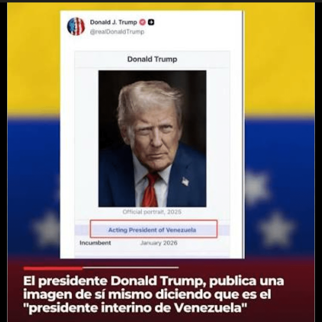 В последние часы вирусное изображение, созданное с использованием искусственного интеллекта, привлекло международное внимание: на публикации Дональд Трамп изображён как «временно исполняющий обязанности президента Венесуэлы».
