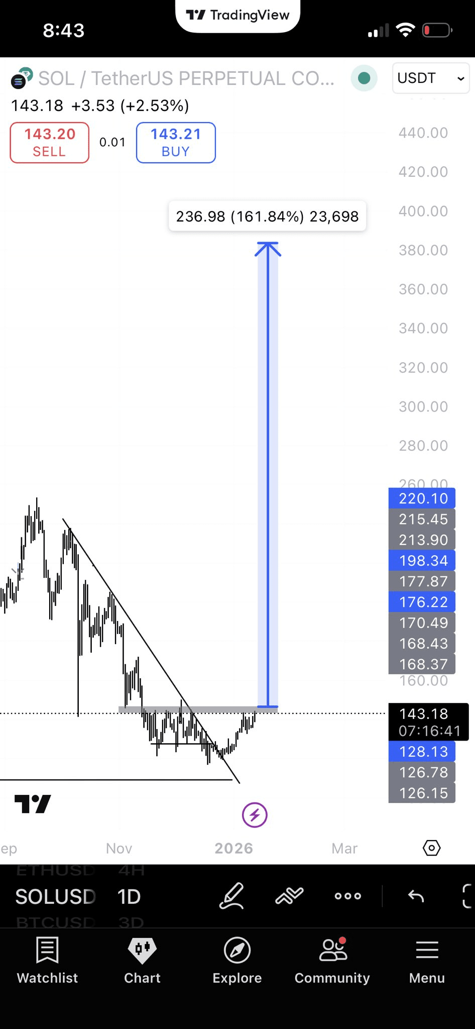 Восходящая ценовая динамика согласуется с позитивным настроением вокруг экосистемы Solana, включая рост активности на цепочке, развитие разработчиков и растущий интерес институциональных инвесторов. Пока SOL удерживается выше восстановленной поддержки, импульс благоприятствует продолжению движения.