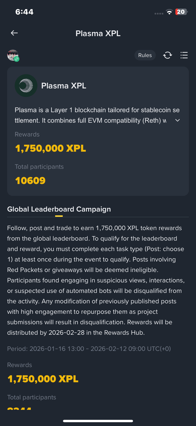 Следите, публикуйте и торгуйте, чтобы заработать 1,750,000 XPL токенов в качестве вознаграждений с глобальной таблицы лидеров. Чтобы получить право на участие в таблице лидеров и вознаграждение, вы должны выполнить каждый тип задания (Публикация: выберите 1) хотя бы один раз в течение мероприятия. Публикации, связанные с Красными Пакетами или розыгрышами, будут признаны недействительными. Участники, уличенные в подозрительных просмотрах, взаимодействиях или подозрительном использовании автоматизированных ботов, будут дисквалифицированы с мероприятия. Любые изменения ранее опубликованных постов с высоким уровнем вовлеченности с целью их повторного использования в качестве проектных представлений приведут к дисквалификации. Вознаграждения будут распределены до 2026-02-28 в Центре Вознаграждений.