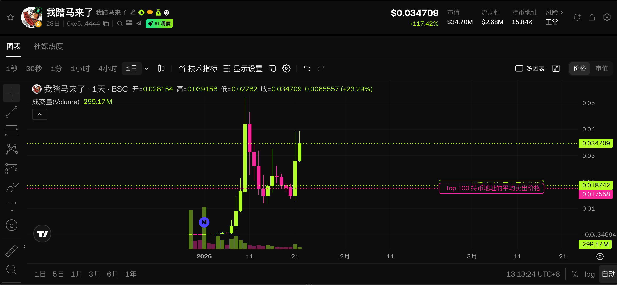 Основываясь на текущем 4-часовом графике K-линий (с точки зрения контрактов) и дневном графике (с точки зрения рынка DEX), в сочетании с текущей рыночной средой, ниже приведен анализ движения $我踏马来了 (в дальнейшем именуемого токеном).