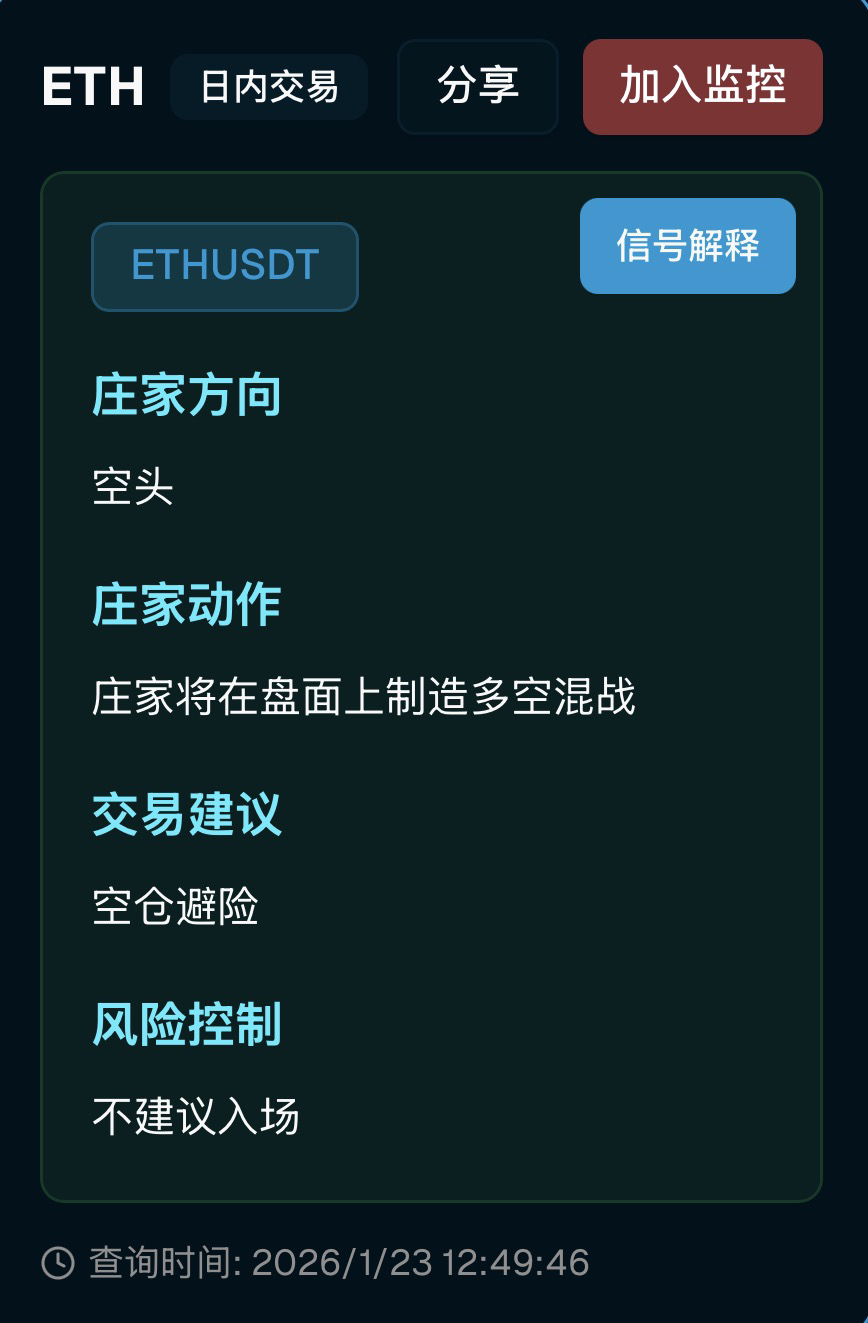 Второй сценарий — сценарий пробоя. Если даже отскок около 3000 не удается, а цена продолжает ослабевать, то не следует пытаться угадать дно во время падения, потому что без зоны накопления это значит «чем больше угадываешь, тем хуже», вам нужно дождаться, когда она сама спровоцирует панику и появится явный сигнал остановки падения (например, последовательные нижние тени, быстрое падение с последующим ростом, но без новых минимумов), затем подумайте о краткосрочном отскоке, но этот подход подходит только для быстрой торговли, не подходит для длинных позиций. Подводя итог: текущая ситуация на рынке определяется «доминированием медведей + хаотичной ликвидацией», давление сверху становится все сильнее, недавние 3015-3038 — это первая преграда для быков, не спешите быть героем, пока не закрепитесь. С точки зрения управления рисками, сигнал за этот час уже дает «оставаться в кэше для защиты/не рекомендовать входить на рынок», если хотите торговать, то можете только с маленькими позициями для проб и строго устанавливать стоп-лоссы, не позволяйте себе стать ликвидностью в хаосе.