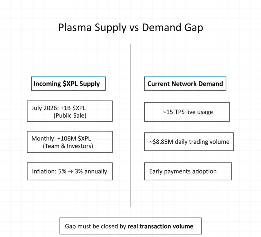 Не достаточно быстро, чтобы поднять цену. Достаточно быстро, чтобы создать такой органический, устойчивый объем транзакций, который делает миллиарды вновь разблокированных XPL похожими на ликвидность, а не на избыток предложения. Достаточно быстро, чтобы когда эти даты наступят, сеть больше не вела переговоры со спекулянтами — она обслуживает реальных пользователей, которым нужен XPL для взаимодействия с самым дешевым слоем расчетов в стабильной валюте.